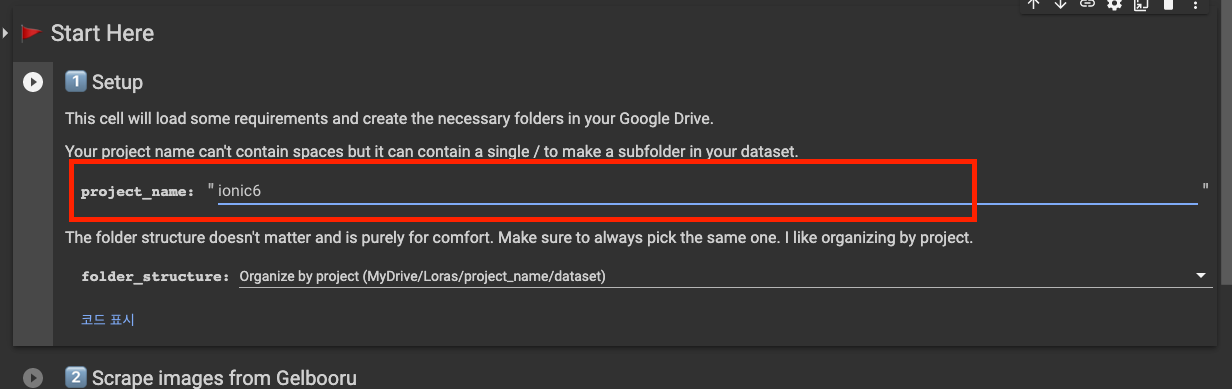 프로젝트명을 입력하고 Setup 셀을 실행합니다.