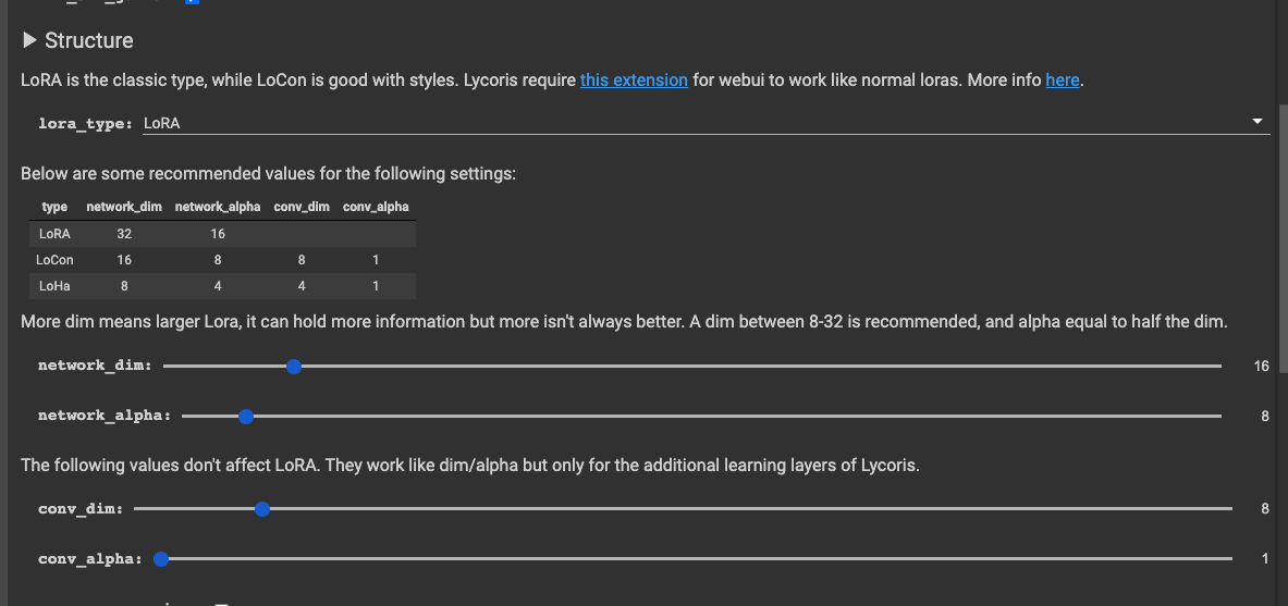 network_alpha | dim/2 | 학습률 조정 파라미터 |