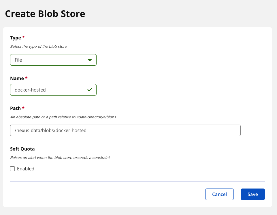 Blob Store는 실제 데이터가 저장될 장소입니다. 로컬에서 생성한 이미지가 저장될 hosted와 외부에서 가져올 proxy를 생성합니다.